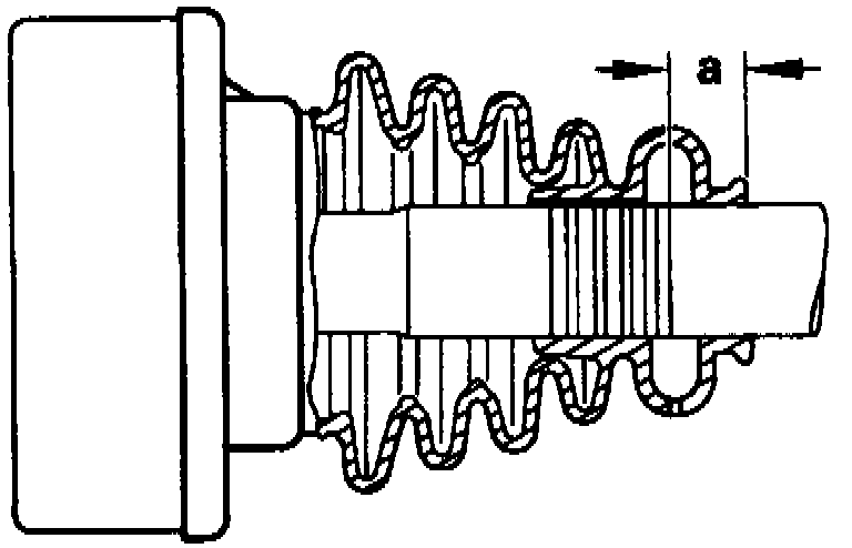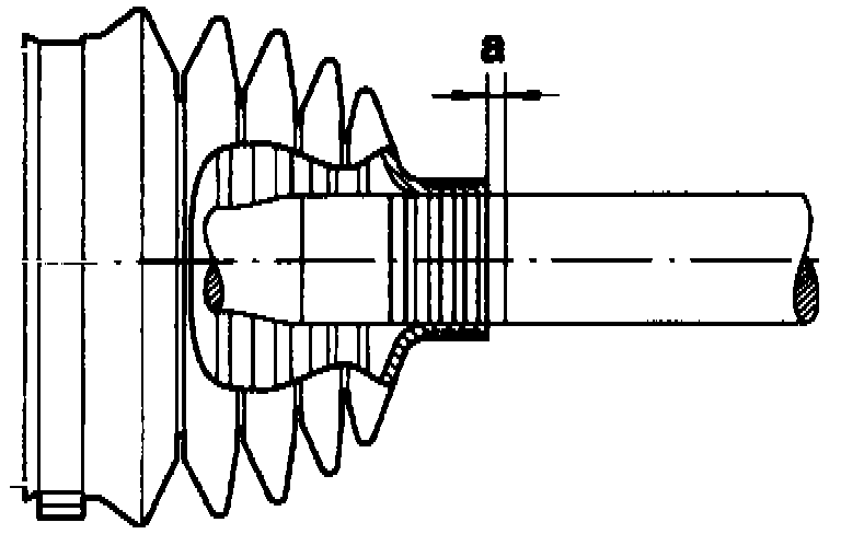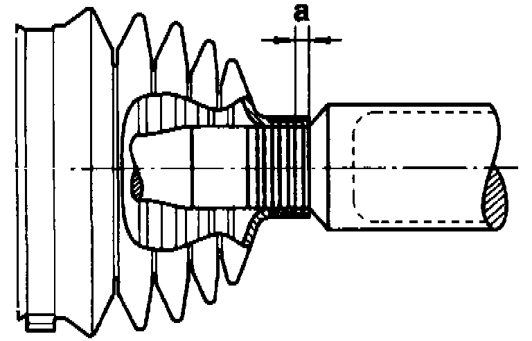c. Left outer boot on 27 mm driveshaft Fig. 13 dimension (a) equals 1/2 to 11/2 grooves visible.