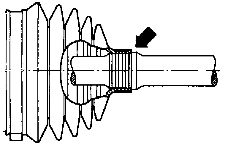 d. Left outer boot on 22 mm driveshaft, Fig. 14 end of boot butts against shoulder.