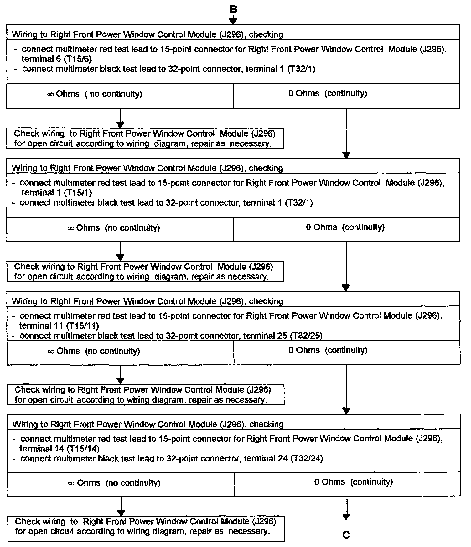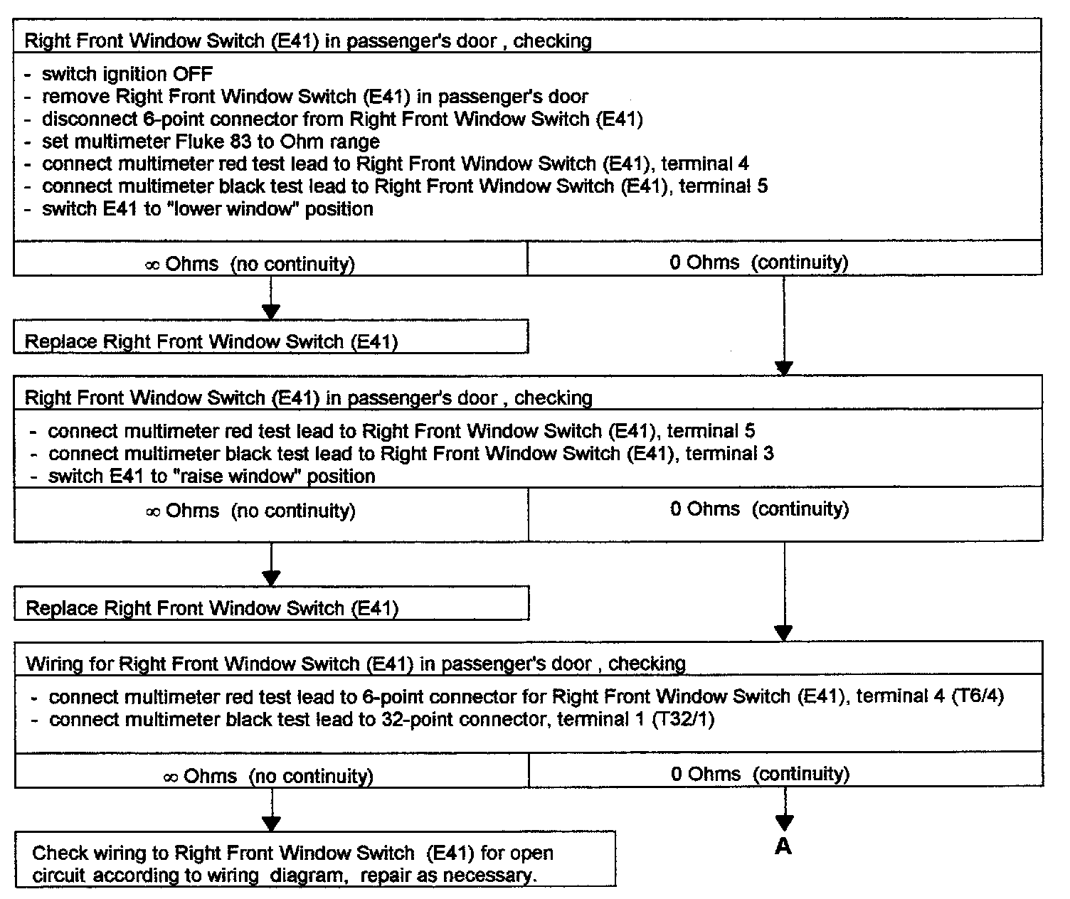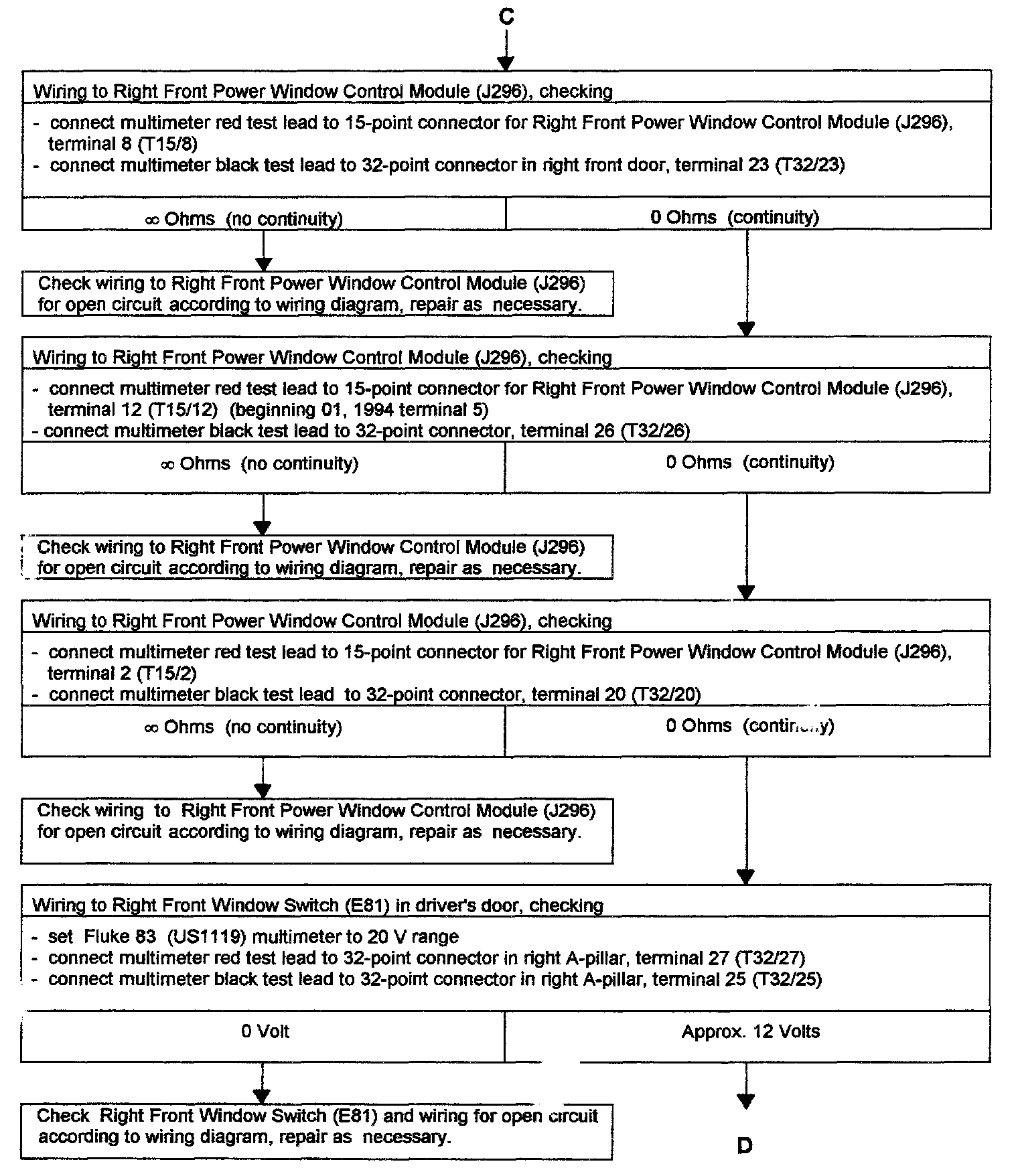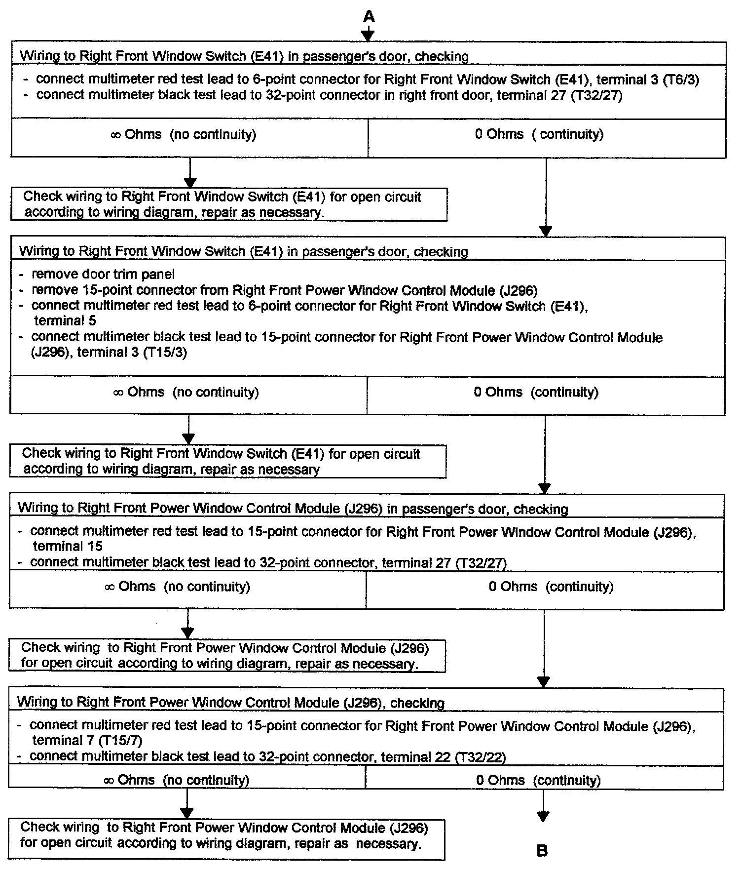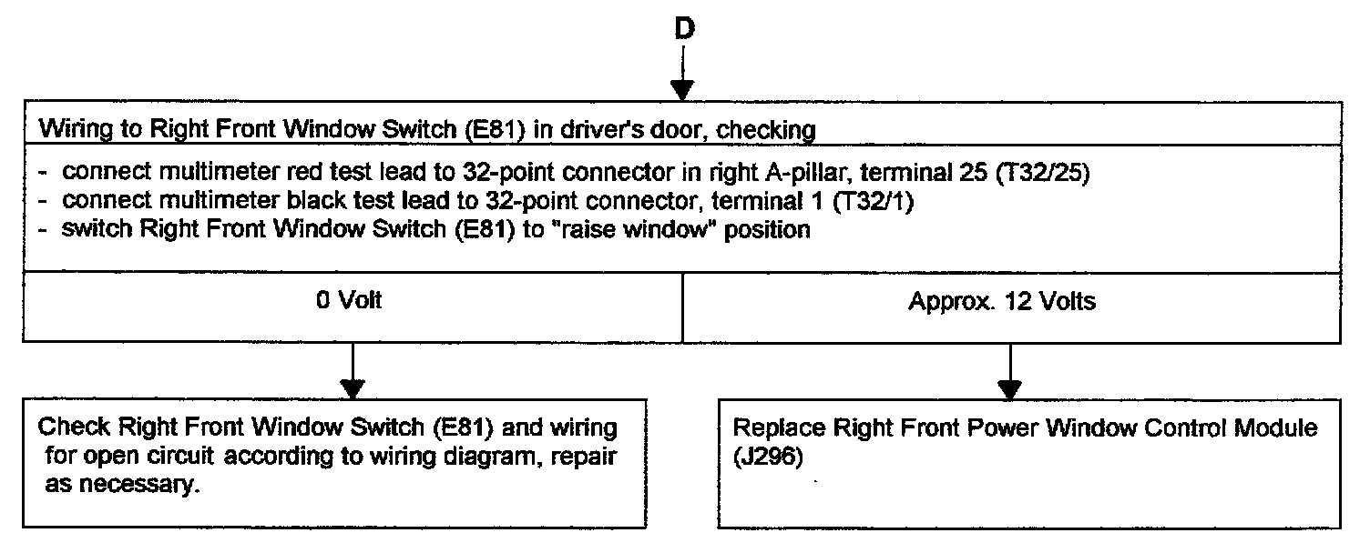 - Troubleshooting "POWER WINDOWS, LEFT AND RIGHT FRONT, CHECKING" for passengers door completed, but problem was not connected.