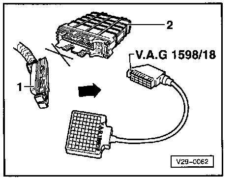 - Connect VAG 1598/18 Test Box to ECM harness connector
