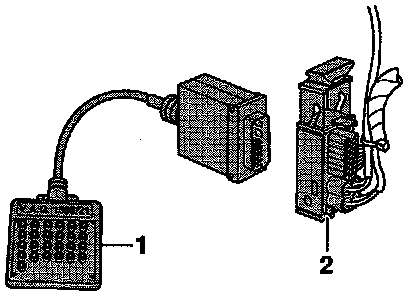 - Disconnect multi-pin harness connector from ABS control module -J104- and connect test box tool No. VAG 1598/21 (1), or equivalent, to harness connector (2).