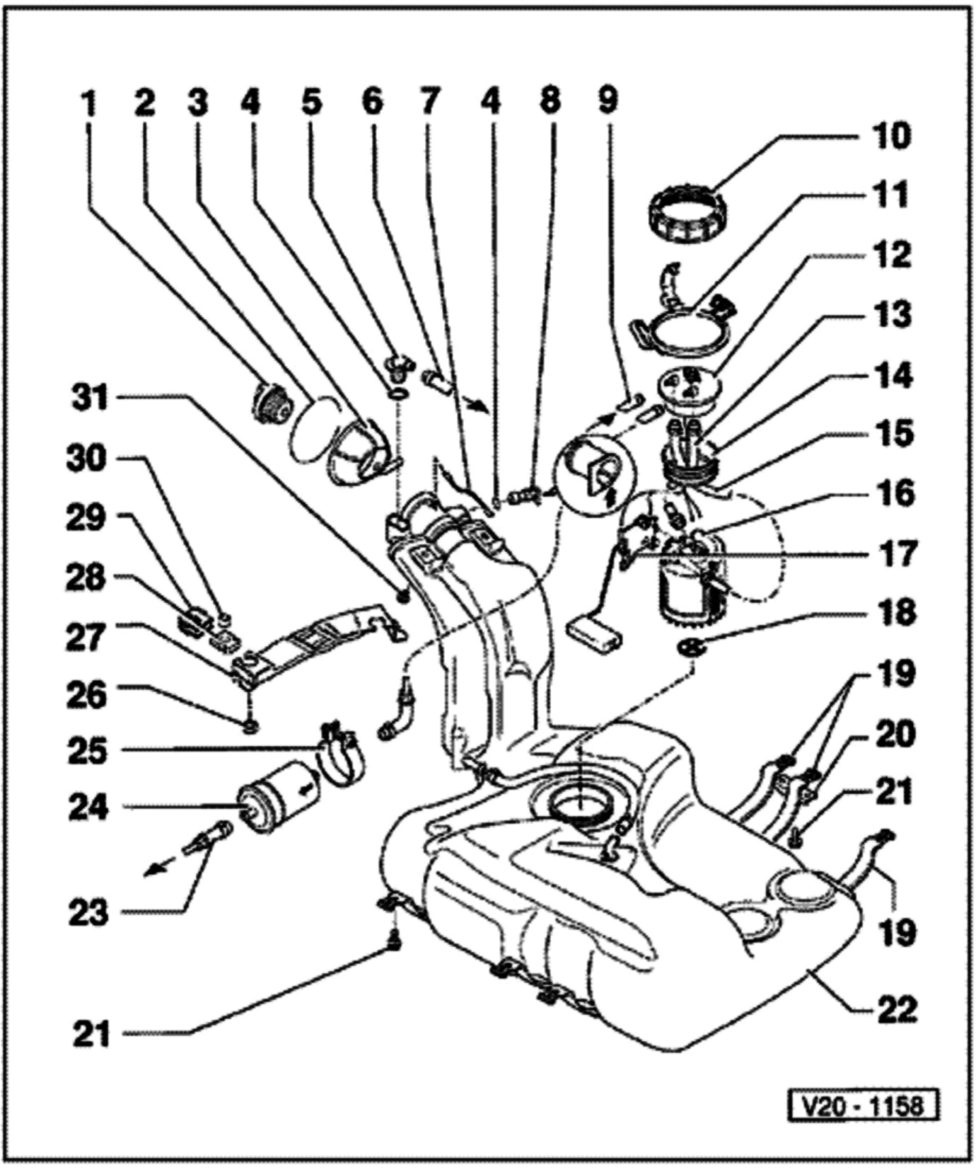 Fuel filter and fuel tank with attachments, removing and installing1. Cap