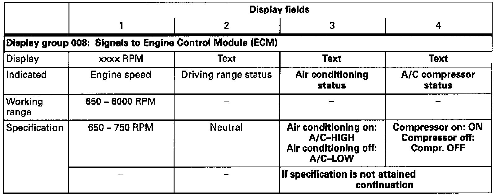 The A/C compressor will be switched off (Compr. OFF) when the ECM recognized full load and the air conditioning is switched on (A/C-HIGH).