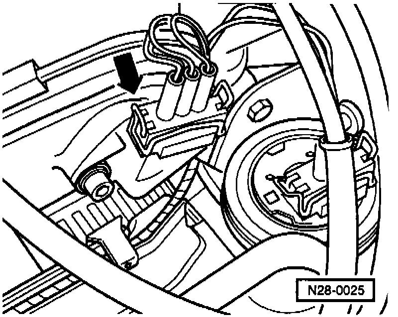 - Connect VAG 1598/18 test box to Engine Control Module (ECM) wiring harness (arrow).