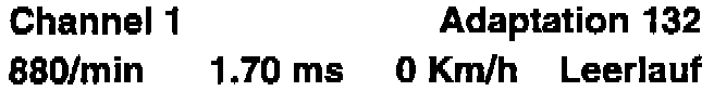 ^ Pressing -1- will decrease the adaptation by 1 or (10 rpm). The lowest adjustment is an adaptation of 124 or 800 rpm.