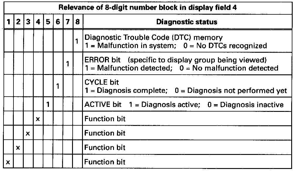 - An "x" in the diagnostic status means the display can be either a "0" or a "1".