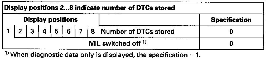 If the specification is not obtained in display field 4 and a 1 is displayed, then the appropriate diagnostic sequence has not yet been performed. The readiness code must still be created. [1][2]Monitors, Trips, Drive Cycles and Readiness Codes
