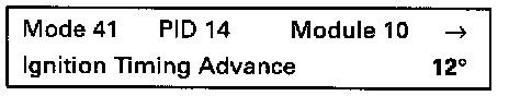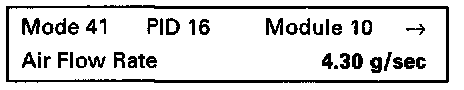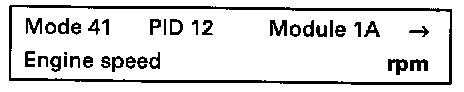 In mode 1 the current diagnostic data can be interrogated. Additionally the readiness code can be displayed (PID1 display field 4).The On Board Diagnostic (OBD) program can be used to check whether individual parameters correspond to actual engine condition.