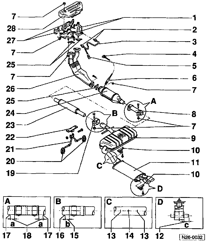 - In production center and rear silencers are one unit. For repair, center and rear silencers are supplied individually, with a double clamp for connection.