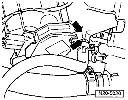 - Marking on vent hose must align with marking on the upper intake manifold -arrows-.