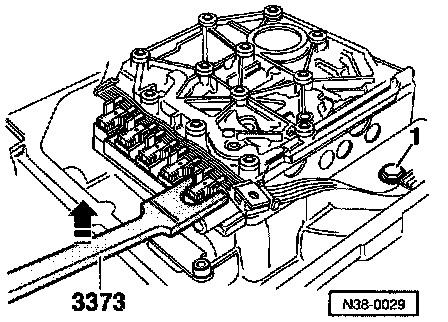 - Pry conductor strip off solenoid valve in direction of (arrow) with special tool 3373.