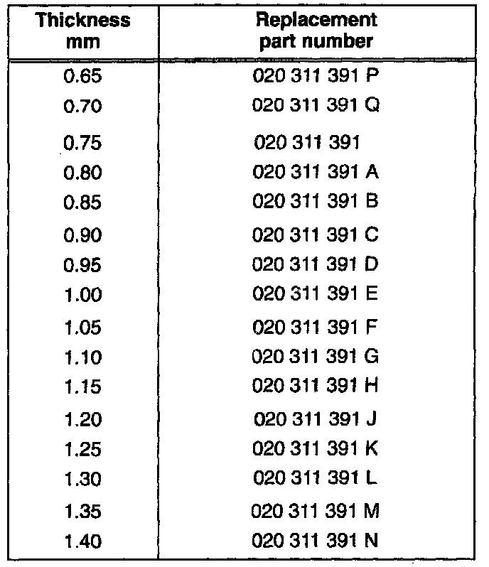 The correct shim thickness is selected by adding together: