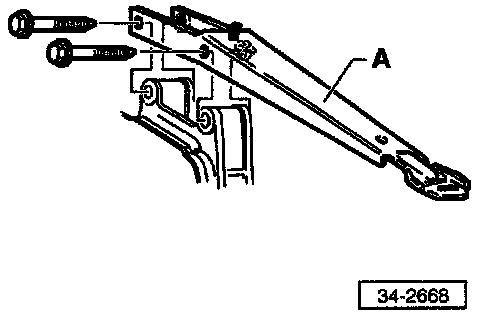 - Remove transmission support (A) (where applicable). Disconnect coolant overflow reservoir and lay it aside for access to the support