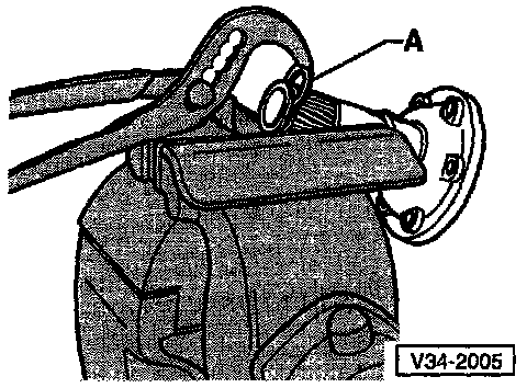 - Press old circlip out of flange shaft groove by installing new circlip (A)