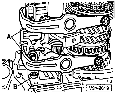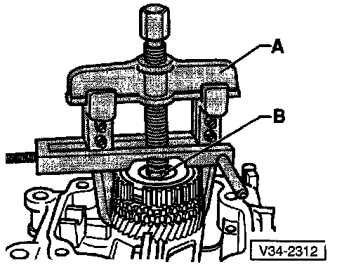 - Remove shift forks (A) together with selector plates
