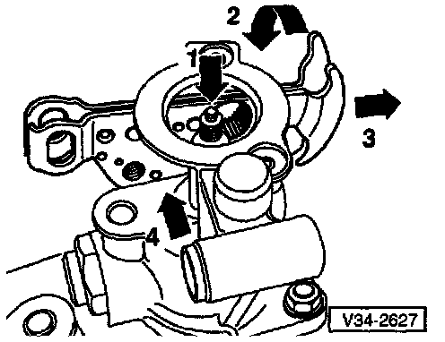 - Swivel gearshift lever (direction of arrow 2) and pull outward (direction of arrow 3), while guiding in area of balance weight bracket (arrow 4)