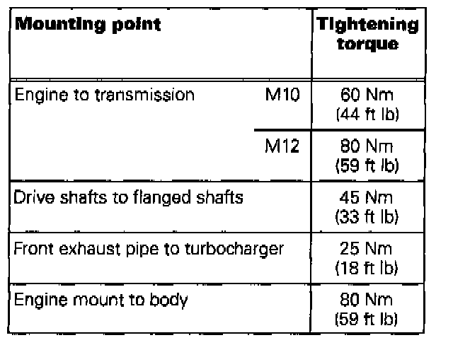 - Loosen front engine mount on carrier, align stress-free by rocking the power train assembly and then retighten