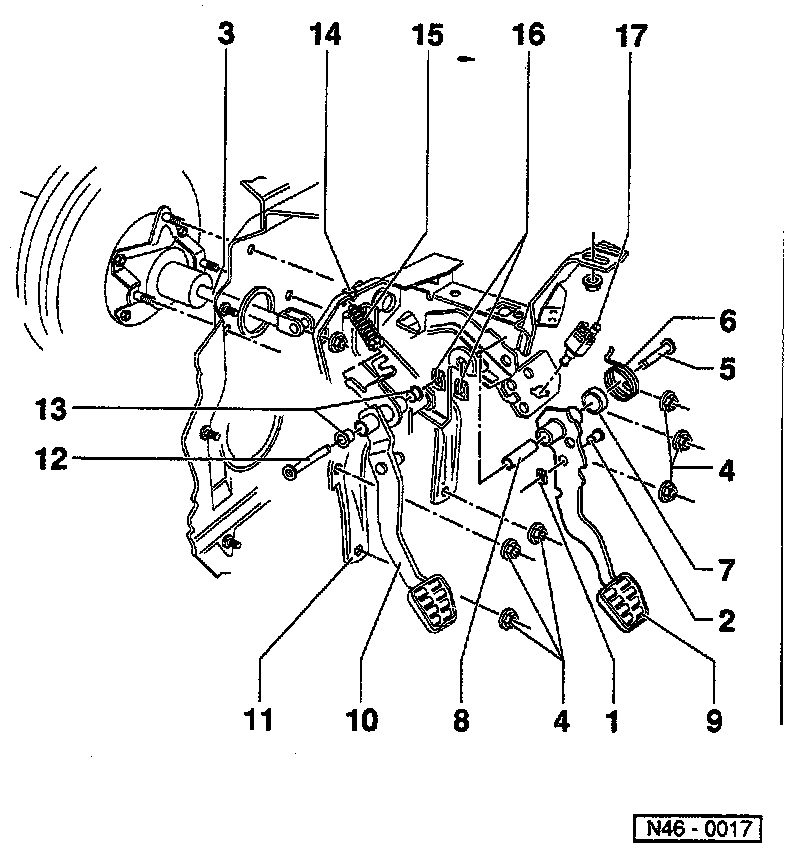 Exploded View Of Pedal Cluster: