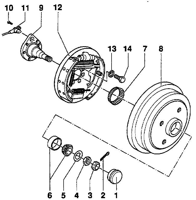 12 Backing plate with brake shoes