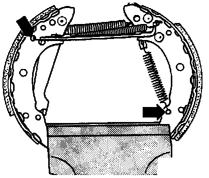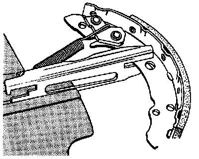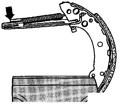 1. Connect locating spring and insert brake shoe into slot in push rod.