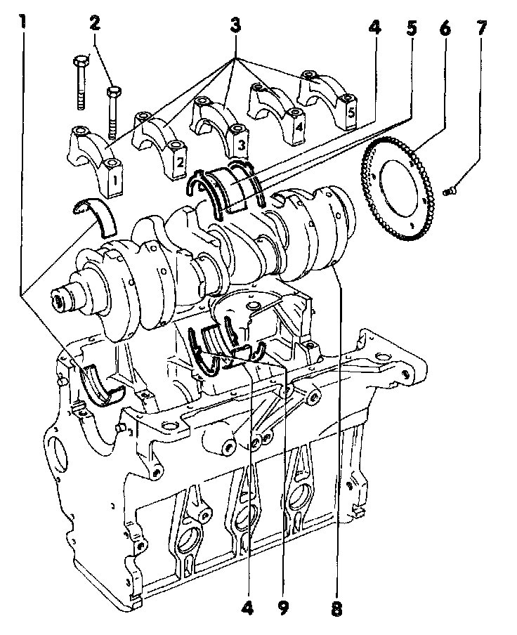 Crankshaft, Removing And Installing1 - Main bearing shells 1,2, 4 and 5