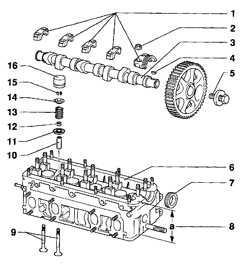 ^ Removing and installing with cylinder head removed: use valve spring compressor 2037