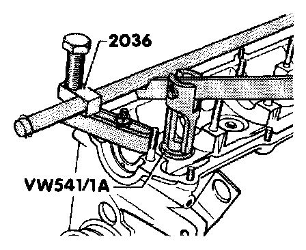 - Compress valve springs with VW 541/1A and VW 541/5, and remove.