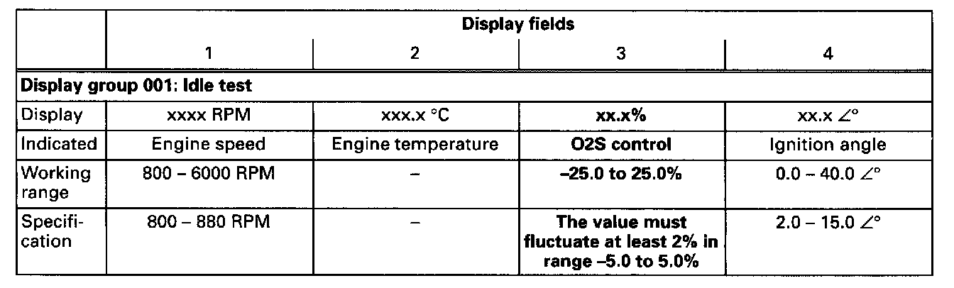 - Note Oxygen Sensor (O2S) control in display field 3.