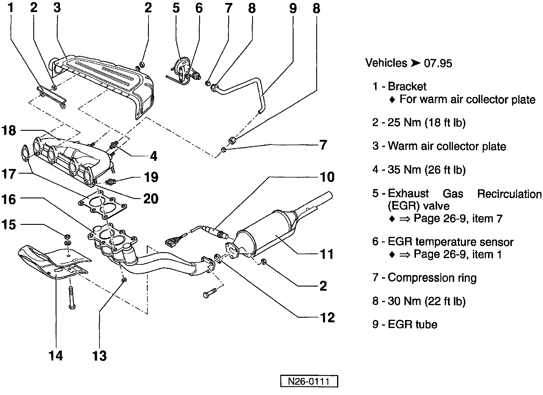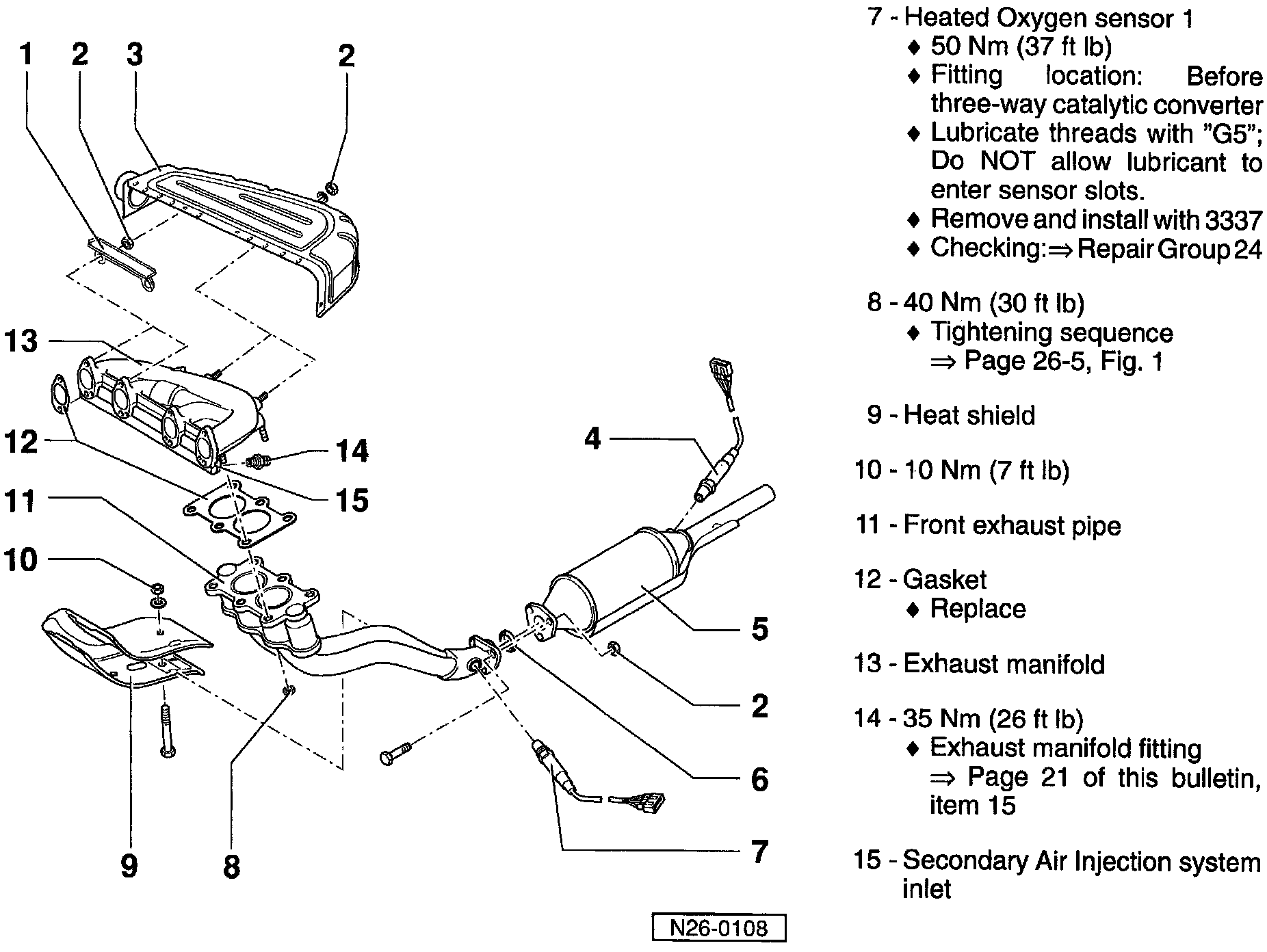 Exhaust system components, removing and installingThe illustration shown on pages 26-2 to 26-4 of the Repair Manual is incorrect. Please cross out these pages in the Repair Manual and mark with "see TB 00-95-02"