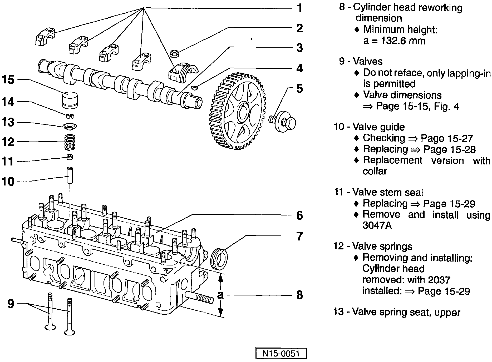 Cylinder heads with cracks between the valve seats or between the valve seat inserts and the spark plug threads can be used without decreasing the service life, provided The cracks do not exceed a maximum of 0.5 mm in width, or when no more Than The first spark plug thread is cracked.