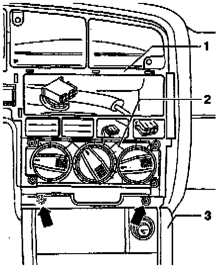 - Remove 2 screws-arrows- and take out central vent -1-.