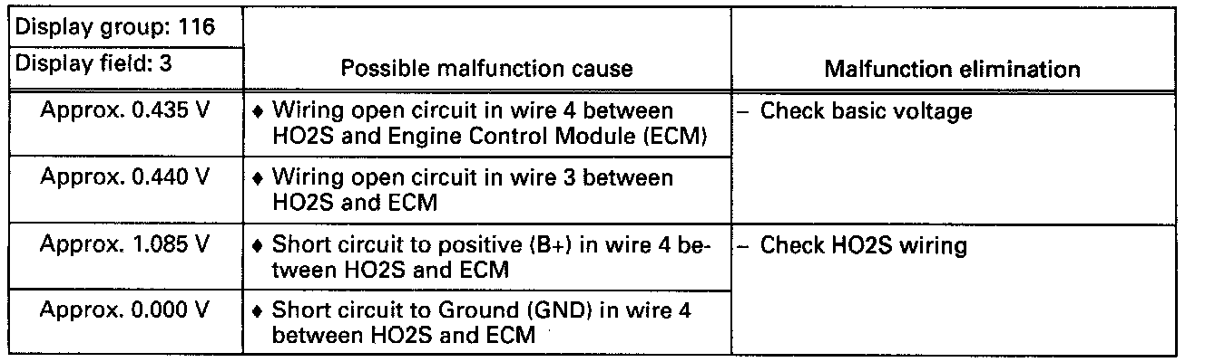 - Note HO2S voltage (display field 3).