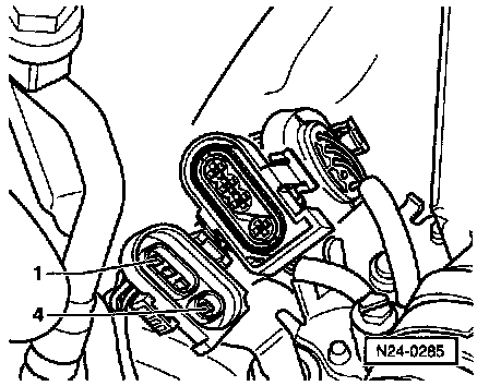 - Separate 4-pin connector -2- (brown) to HO2S 2 -G108- (after three way catalytic converter).