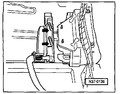 - Release multi-pin connector in direction of arrow and disconnect control module.