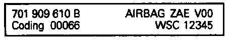 - The display shows the Airbag Control Module identification number with a letter index (e.g. "B", the code number and the shop code)