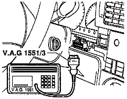 - With ignition switched OFF, connect Scan Tool (ST) VAG 1551 with adaptor cable VAG 1551/3.