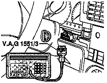 With ignition switched OFF, connect VAG 1551 Scan Tool (ST) with VAG 1551/3 adapter cable.