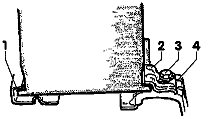 - Position battery. Seat lower lip -1- in clamping strip, as shown.