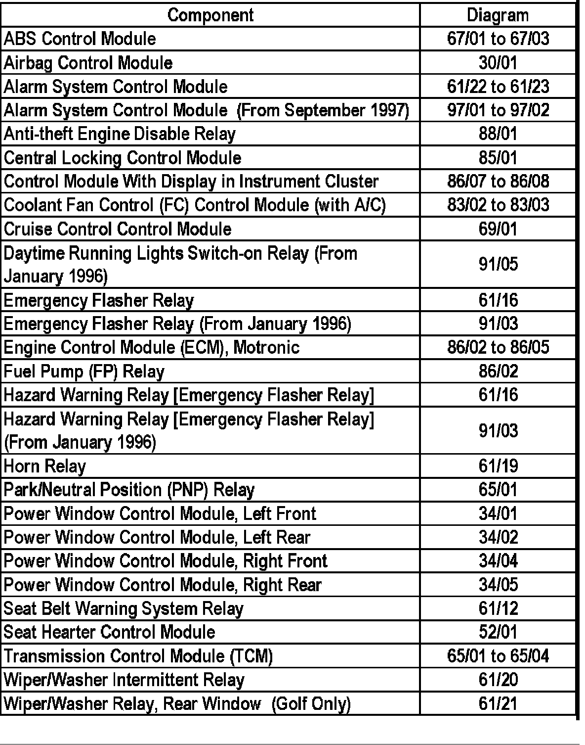 Master Diagram Index