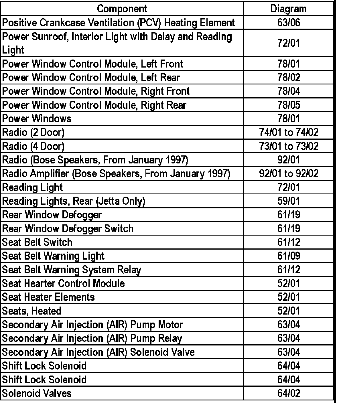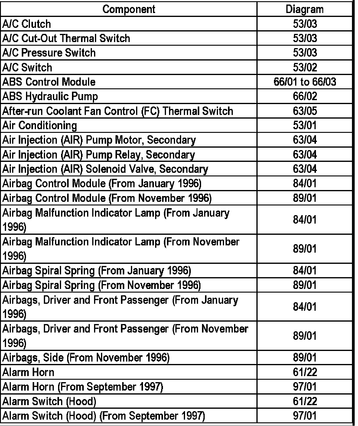 Master Diagram Index