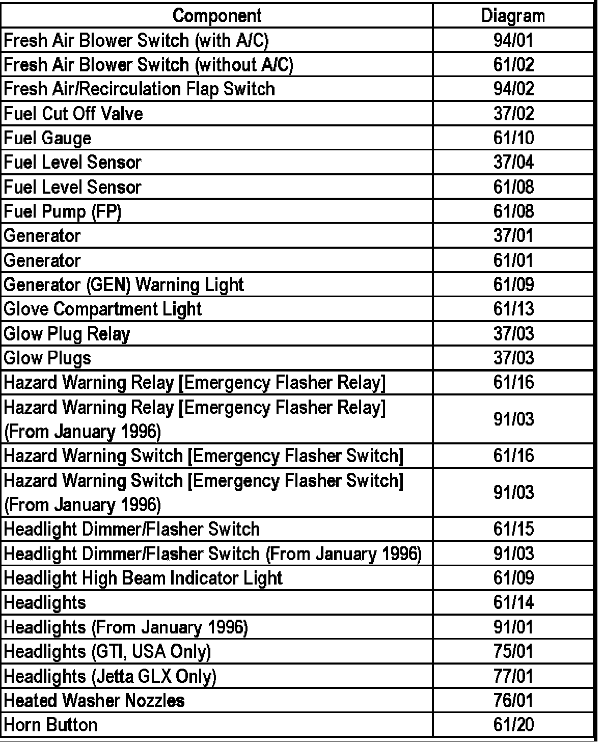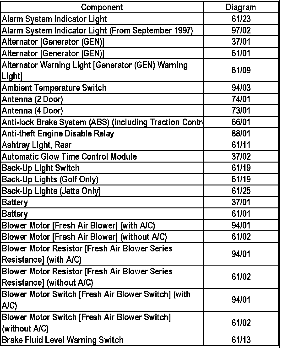 Golf (1H1) L4-1.9L DSL Turbo (1Z)
