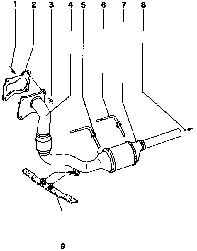 WARNING: Do not re-use any fasteners that are worn or deformed in normal use. Some fasteners are designed to be used only once, and are unreliable and may fail if used a second time. This includes, but is not limited to, nuts, bolts, washers, circlips and cotter pins. Always follow the recommendations in this information, replace these fasteners with new parts where indicated, and any other time it is deemed necessary by inspection.NOTE: After exhaust system repairs, make sure that the system is mounted without stress or preload, and that there is sufficient clearance between the system and the body. If necessary, loosen clamps and align mufflers and pipes to obtain sufficient clearance to body and balanced loads at hangers.