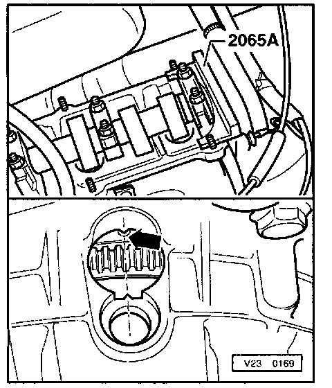 - Turn camshaft until the setting bar contacts the feeler gauge.