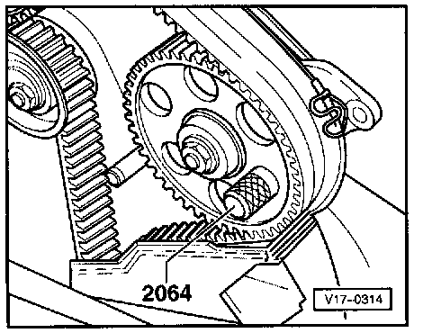 - Place a drift through hole in the rear of the toothed belt guard and release the camshaft sprocket from camshaft taper with a careful tap from a hammer.