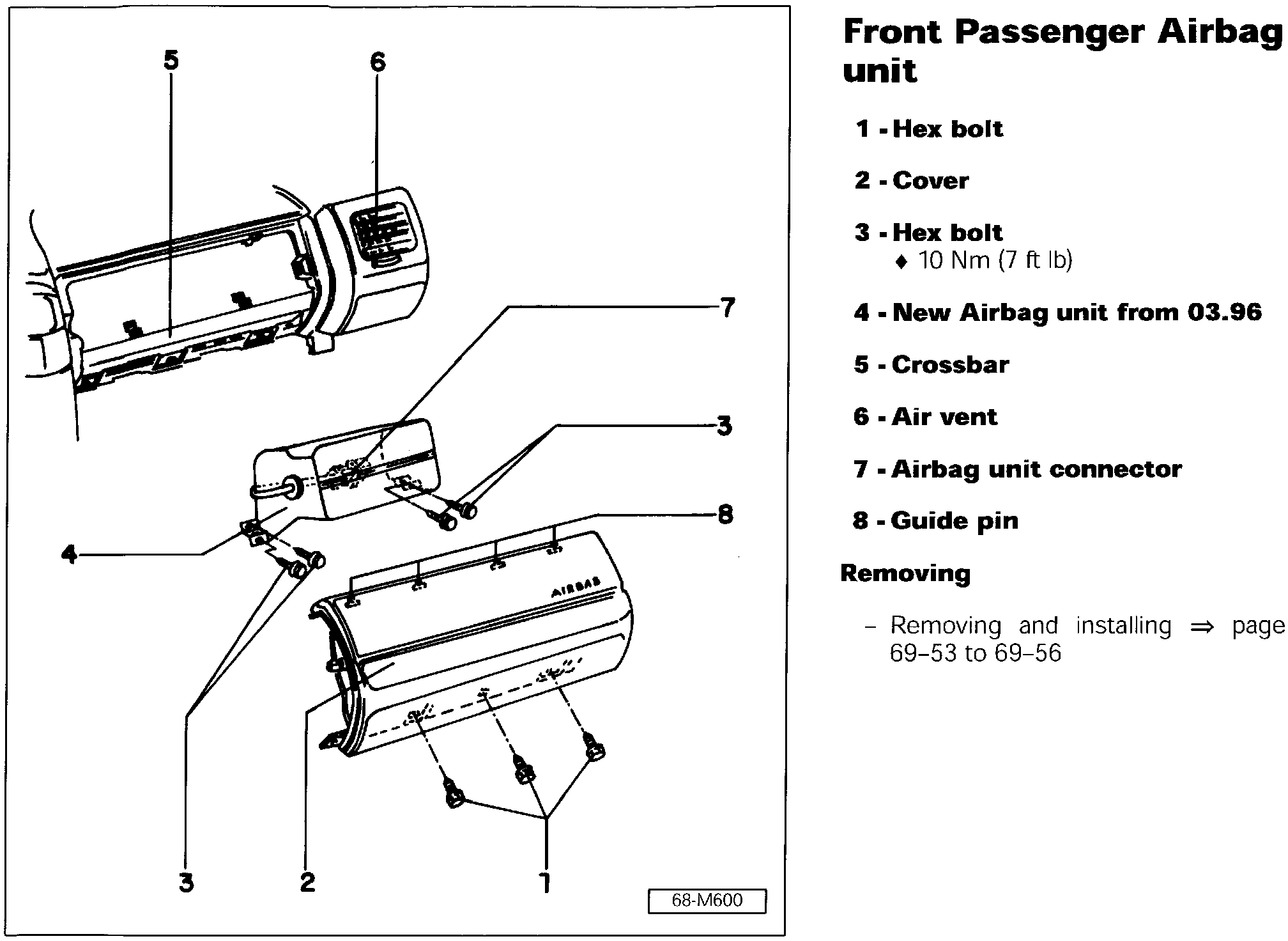 Beginning 03.96 production, a new front passenger airbag unit has been installed.