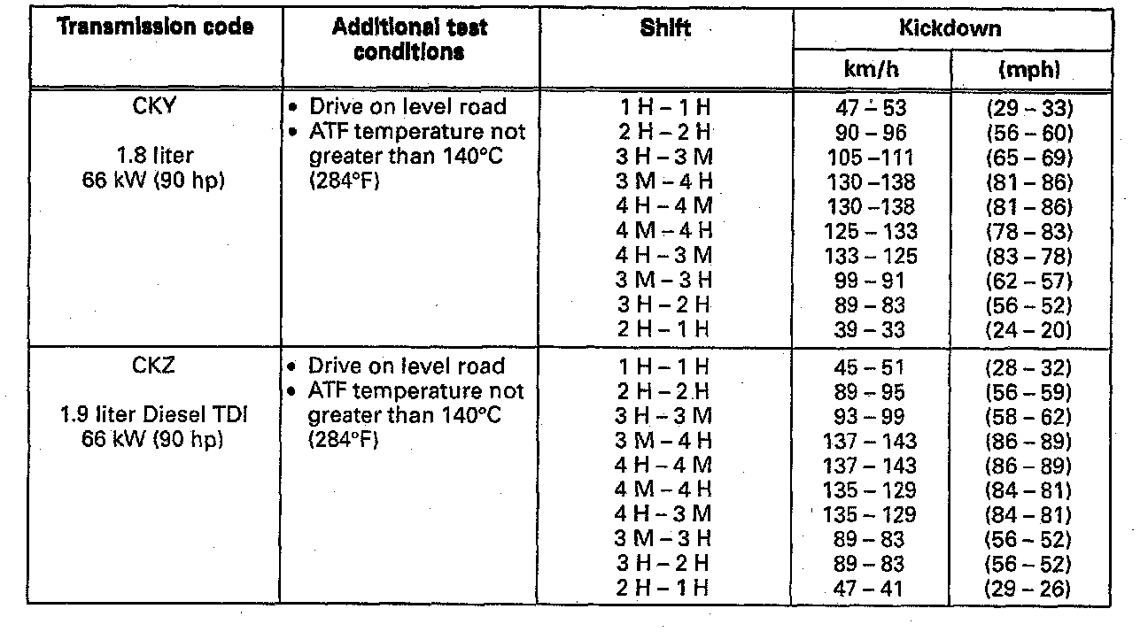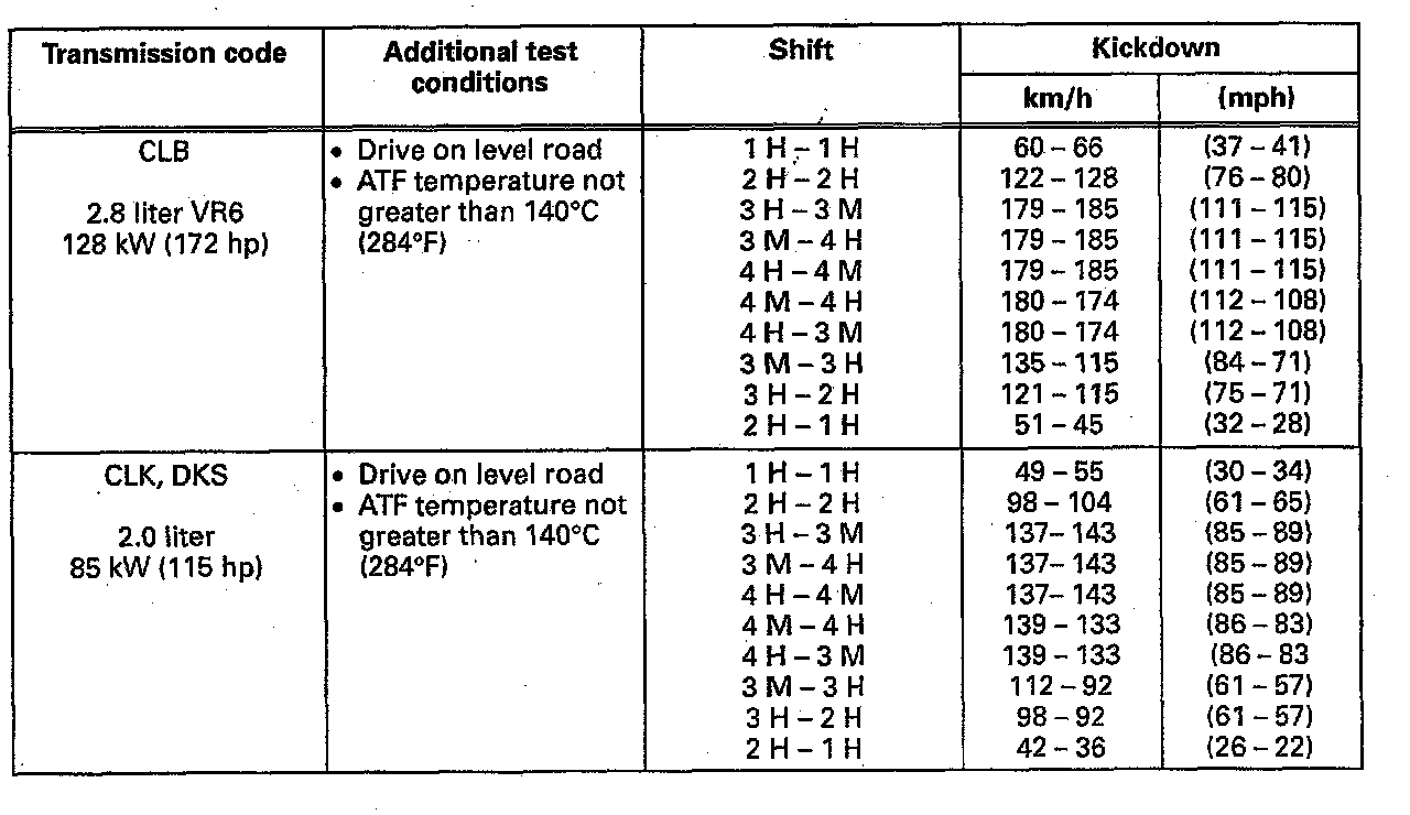 NOTE: When checking the shift points note that the speedometer can deviate within the permissible tolerances from the specified value.
