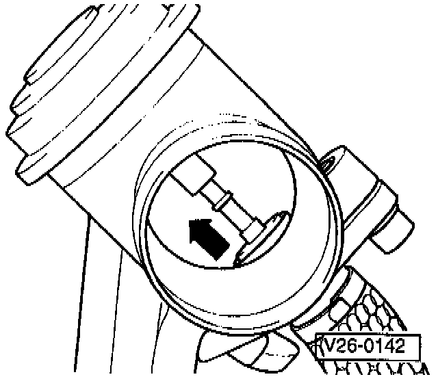 - Remove hose (from charge air cooler) to intake at -arrow-.