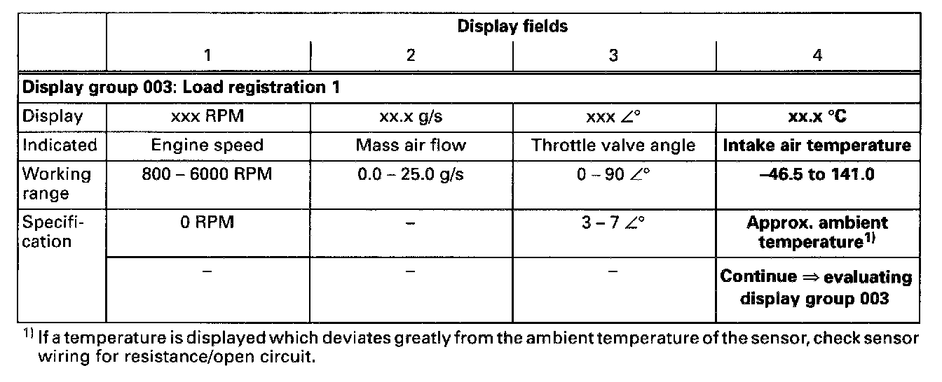 - Press buttons -0-, -0- and -3- for display group 003 and press -Q- button to confirm input.