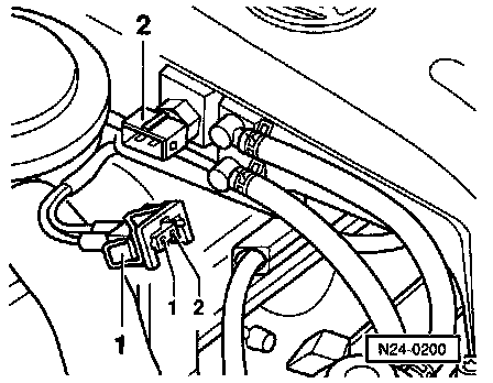 - Disconnect 2-pin connector -1- from Intake Air Temperature (IAT) sensor -G72- -2-.