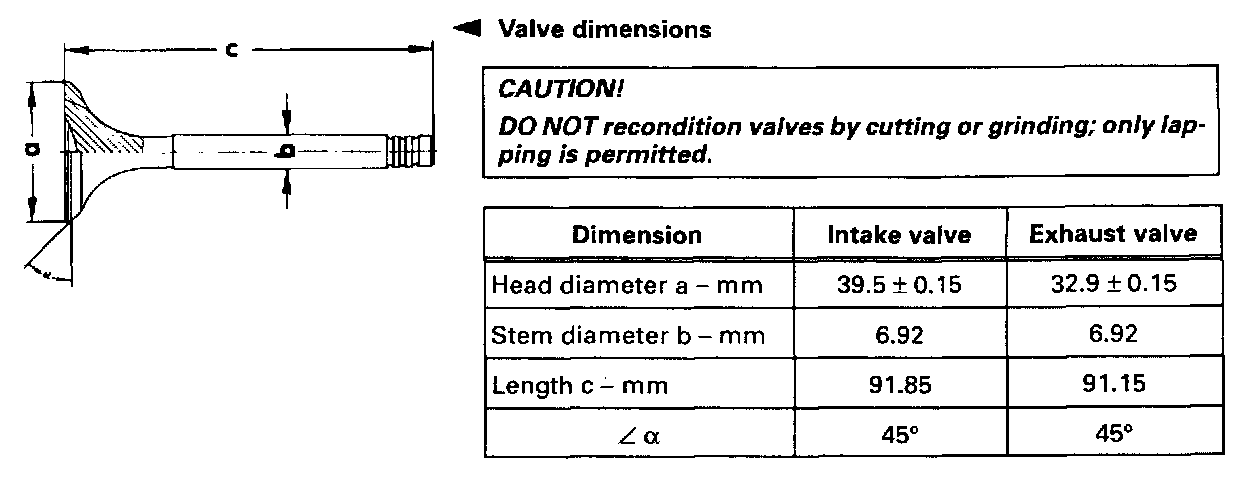 Intake And Exhaust Valve Seat Specifications: